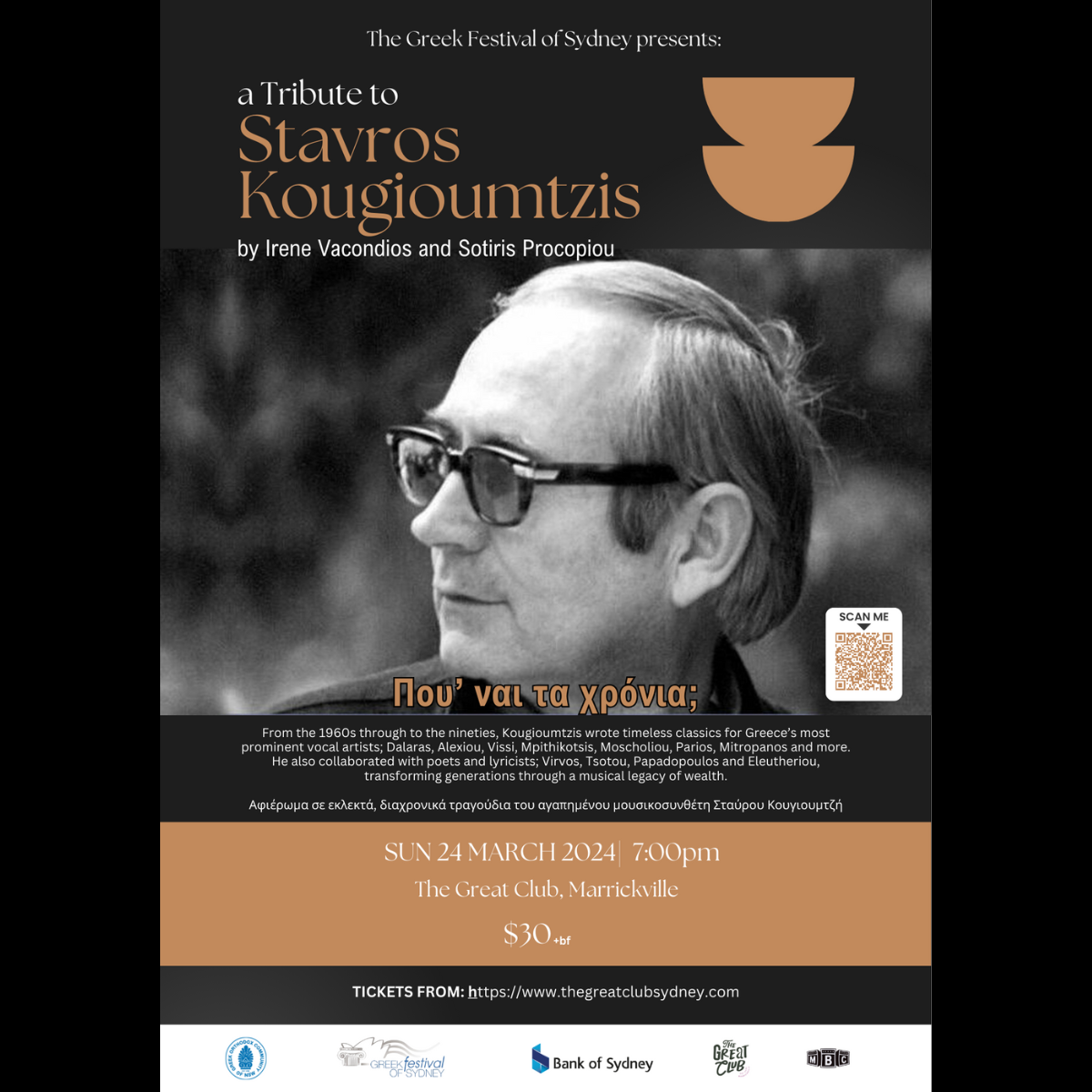 From the 1960s through to the 90s, Kougioumtzis wrote timeless classics for Greece’s most prominent vocal artists; Dalaras, Alexiou, Vissi, Bithikotsis, Moscholiou, Parios, Mitropanos and more. He also collaborated with poets and lyricists; Virvos, Tsotou, Papadopoulos and Eleftheriou, transforming generations through a musical legacy of wealth.