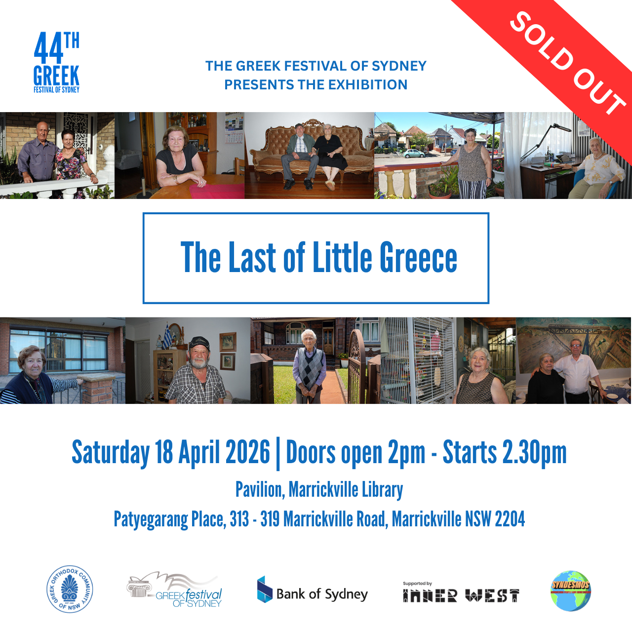 Join Sydney school teacher and local historian Vasilis Vasilas for the exhibition The Last of Little Greece: Marrickville, where fifteen intimate portraits and personal stories capture the enduring bond between the Greek migrant generation and Marrickville’s historic “Little Greece”.